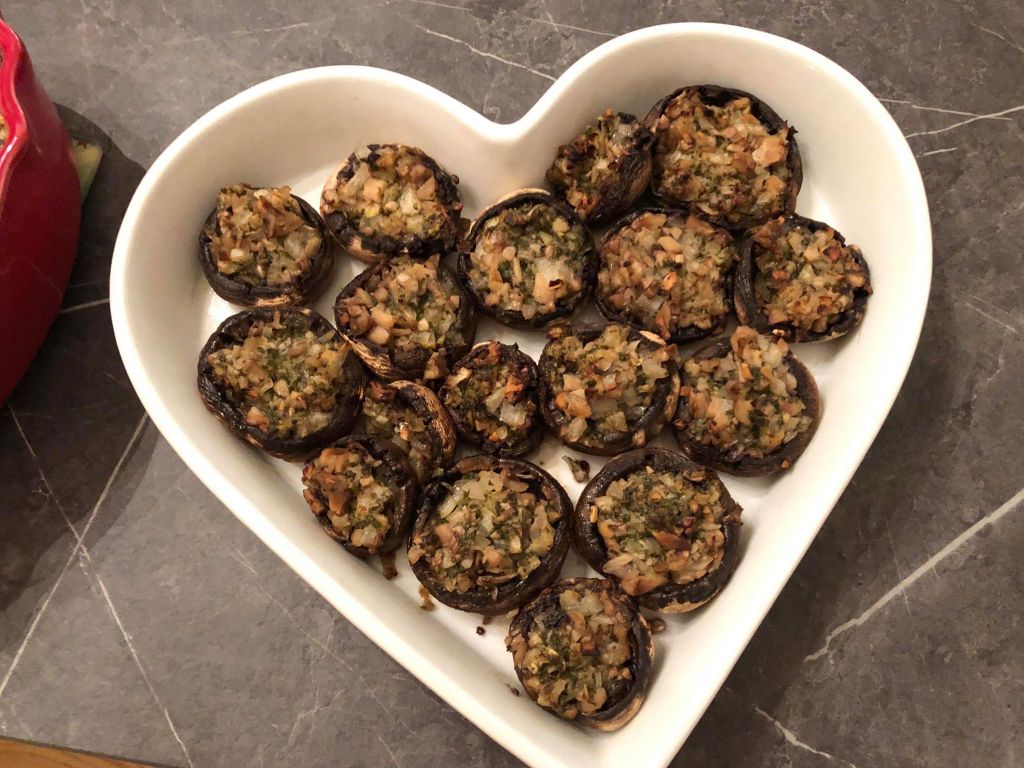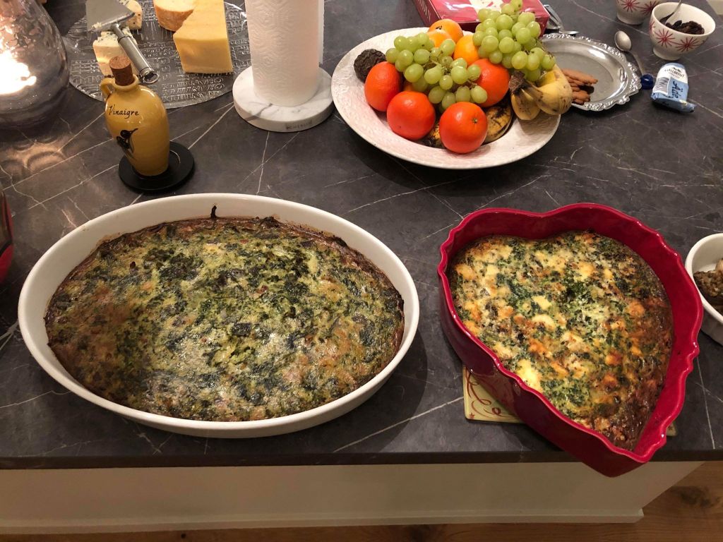 Sen inmundigade vi paj, sallad, gratinerade champinjoner, bröd, kex och ost.