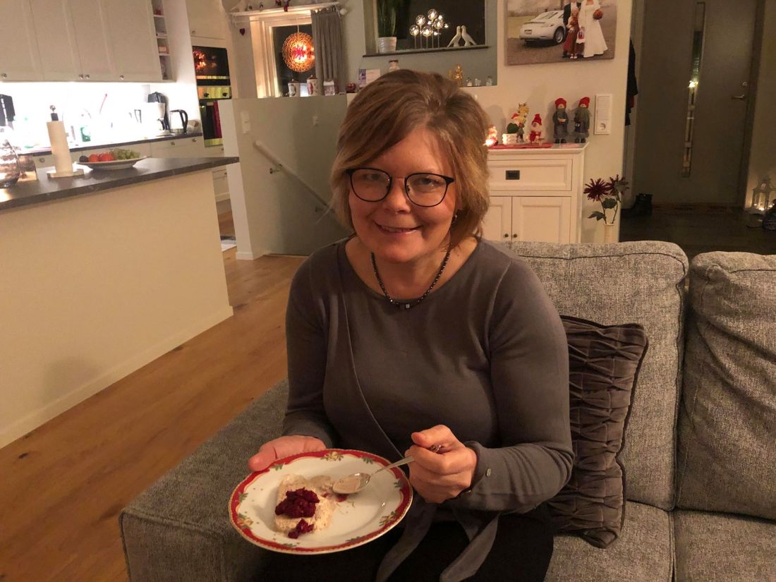 Min f.d. kollega Gunnel Sylvander är en mycket god vän. Vi arbetade båda tidigare som fransklärare i Jönköpings kommun och jag lärde känna Gunnel genom våra franska nätverksträffar. Hon har blivit en mycket god vän och vi träffas lite då och då. Hennes trevlige man Dick var hemma ikväll och åt tillsammans med oss. Sen satte han sig på träningscykeln medan vi slog oss ner framför Nobelfesten på TV. Gunnel bjöd på en massa gott som vanligt. Det var en mysig och trevlig kväll.