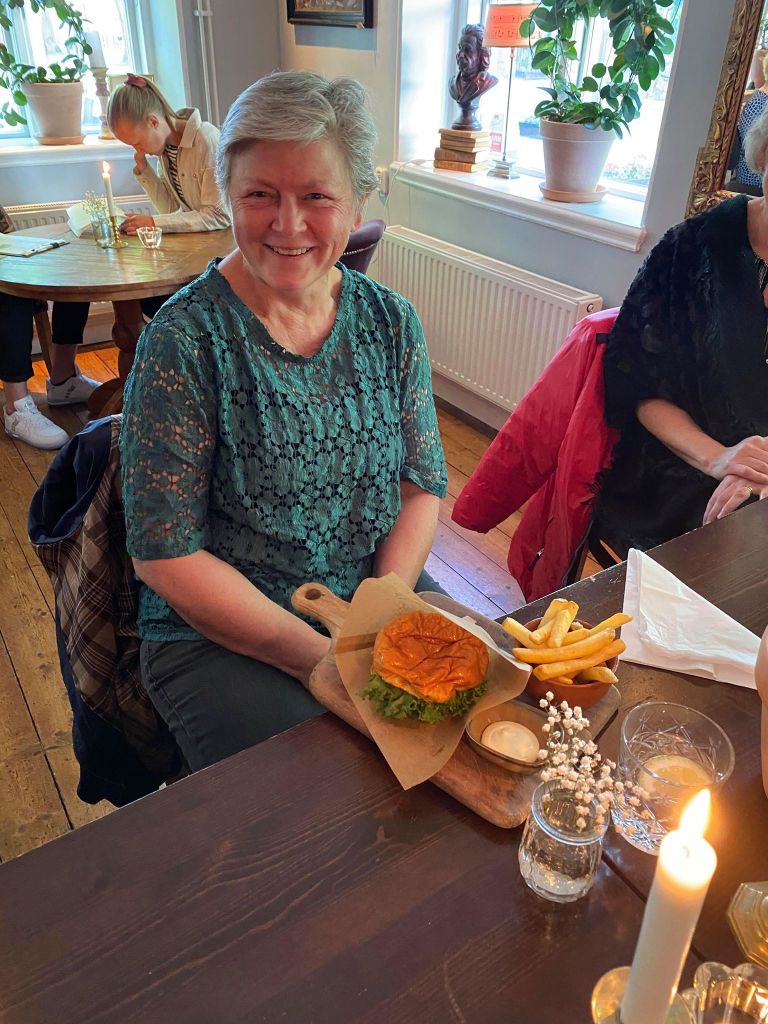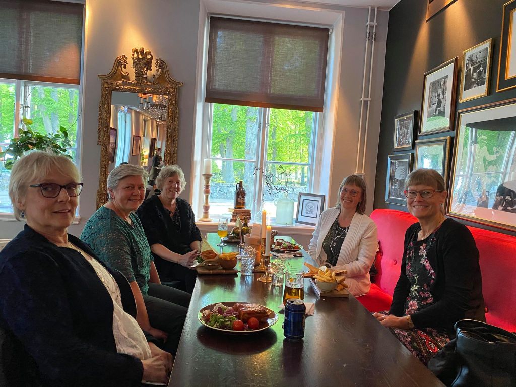 Ikväll har vi varit i Kalmar och firat vår vän Gunilla som fyllde 60 år i onsdags. Vi valde ett ställe där vi kunde ha lite distans så det blev Söderport i Kalmar. Maten kunde varit exklusivare men jag tror alla blev mätta i alla fall. Jag valde ”Seafood Bricka” och den var verkligen god. Jag åt och njöt av varje tugga. Här ser vi gänget: Barbro, Gunilla, Britt-Marie, Karin och jag själv.