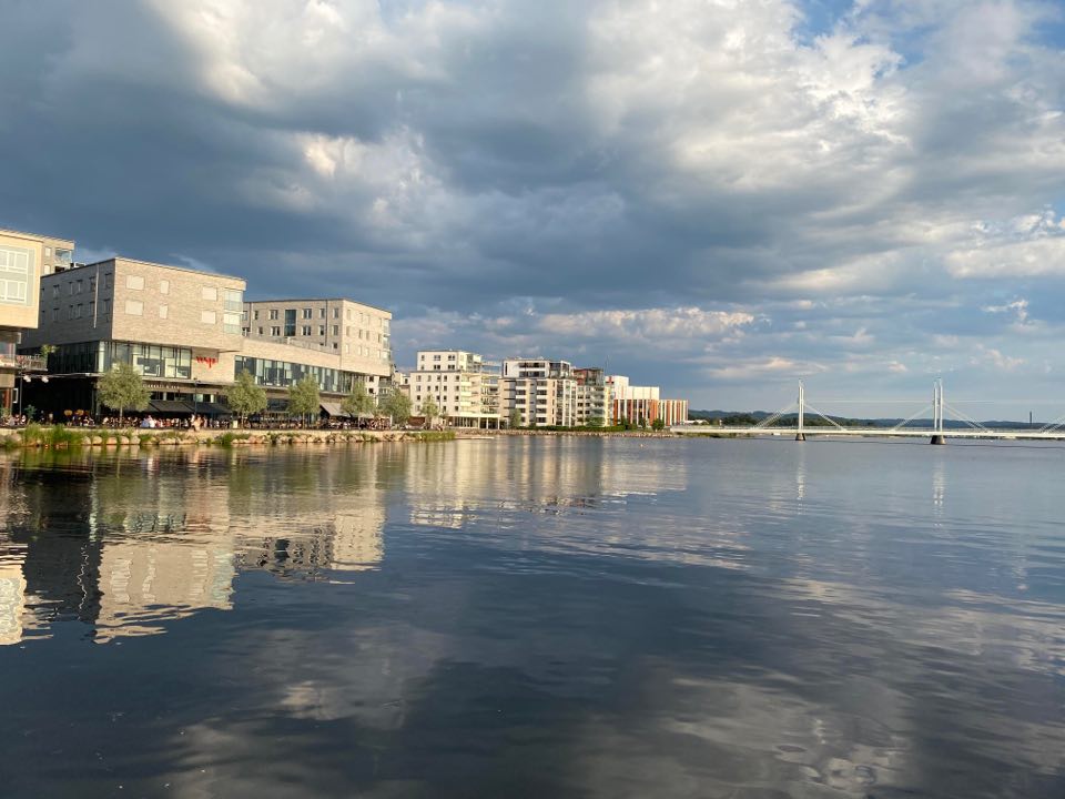 Vi började med att strosa runt lite i området kring Munksjön. Sen satte vi oss på NEO, Nuevo Elegante Osteria. Vi åt pasta och det smakade utsökt. Jag läser på deras hemsida att NEO är en hyllning till den italienska livsstilen och den rustika medelhavsmaten. Jag har alltid gillat denna restaurang men har bara varit här vid lunchtid. Jag älskar de goda grönsakerna som serveras då. https://restaurangneo.se/ Från Neo har man denna vy ut över Munksjön och Atollen.