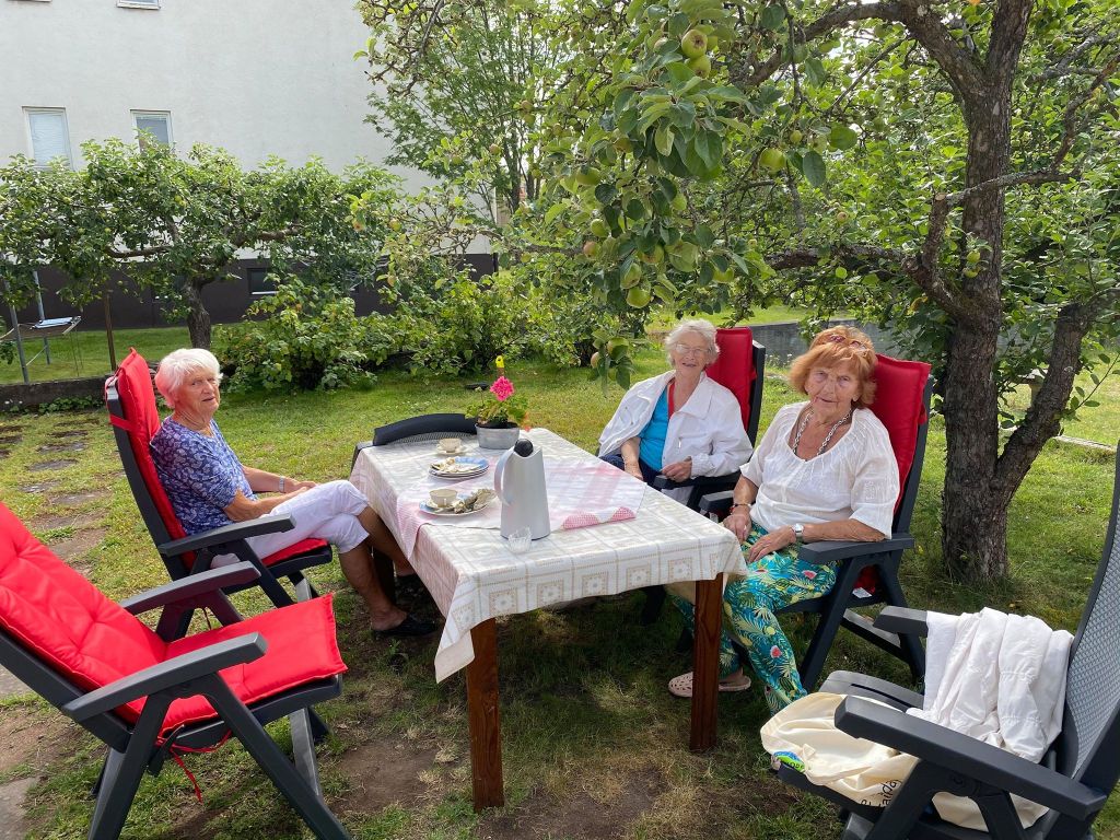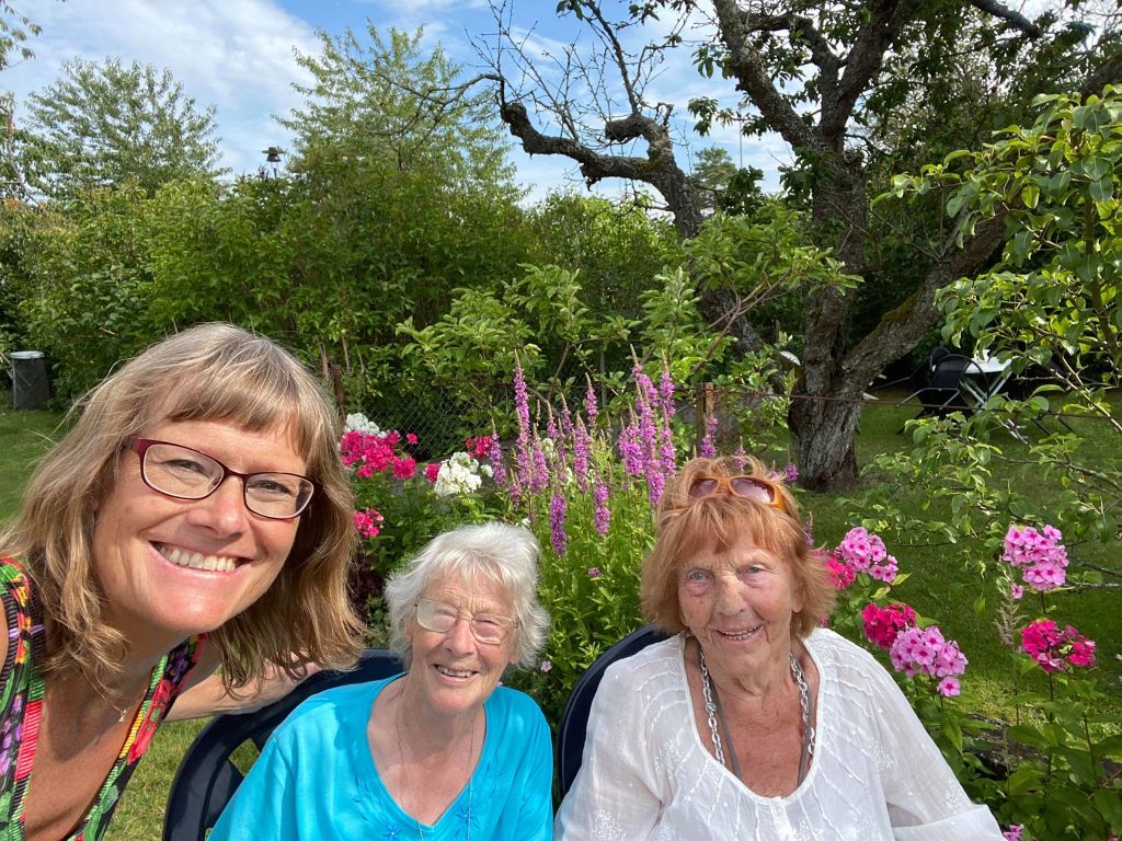 I eftermiddag blev vi bjudna på kaffe av mammas goda granne Sigbritt. De har det så mysigt i sin trädgård och jag älskar dessa stunder tillsammans med dem. Mammas grannar, Inga och Sigbritt, har också blivit mina väninnor. Vi pratar om det mesta. Det är verkligen guld värt med sådana grannar.