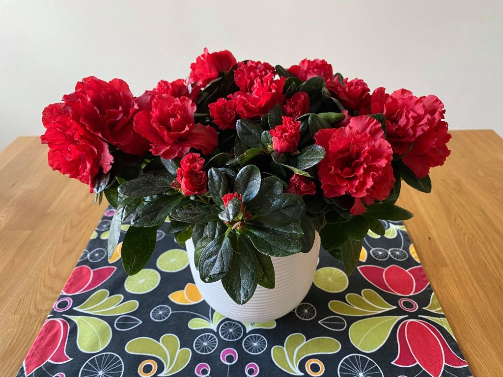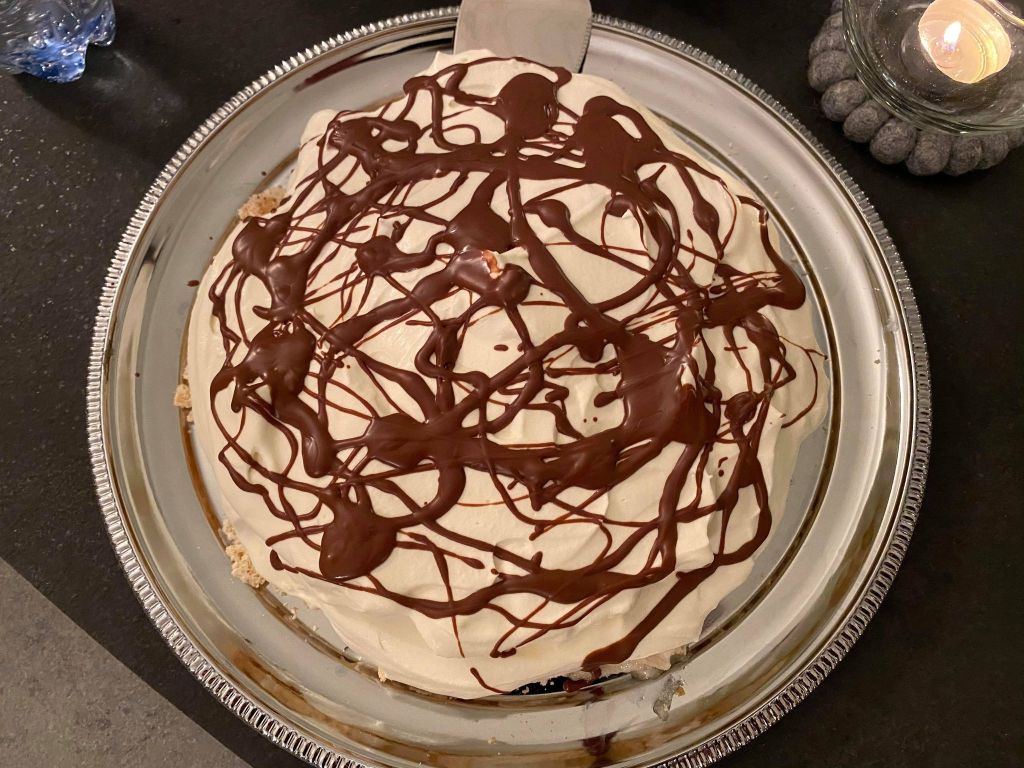 Till kaffet blev det en smaskig tårta med en ganska mjuk marängbotten, citronkräm, grädde och choklad. Den vackra azalean fick jag av Ann-Charlotte.