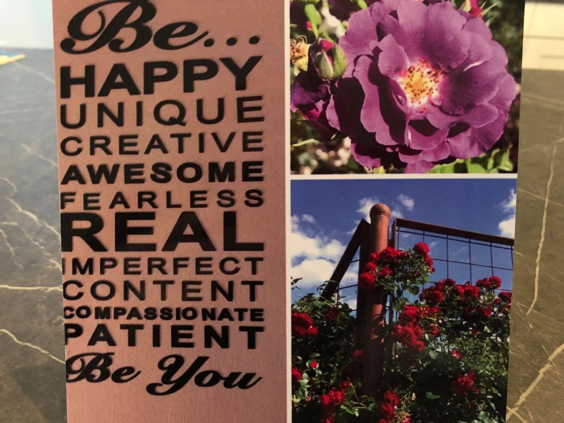 För dig som inte förstår engelska översätter jag här: Var…Lycklig, Unik, Kreativ, Fantastisk, Orädd, Verklig(hetsnära), Ofullkomlig, Nöjd, Medkännande, Tålmodig. Var dig själv!