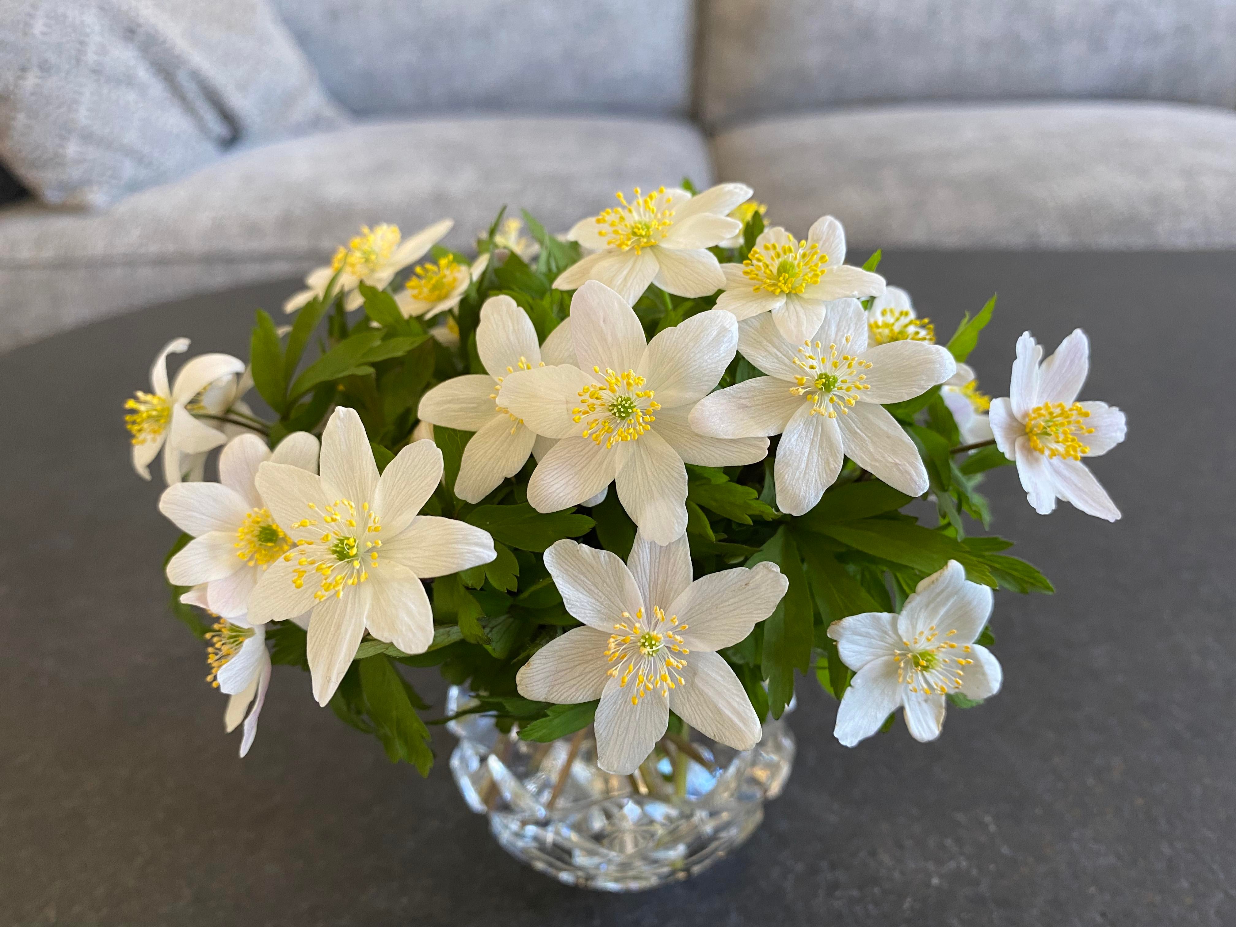 Just nu är det vitsippetid och då vill jag njuta av vitsippor inomhus hela tiden. Det är verkligen vårlikt. Att få gå ut och plocka en bukett som sen står vacker många dagar är ett härligt nöje.